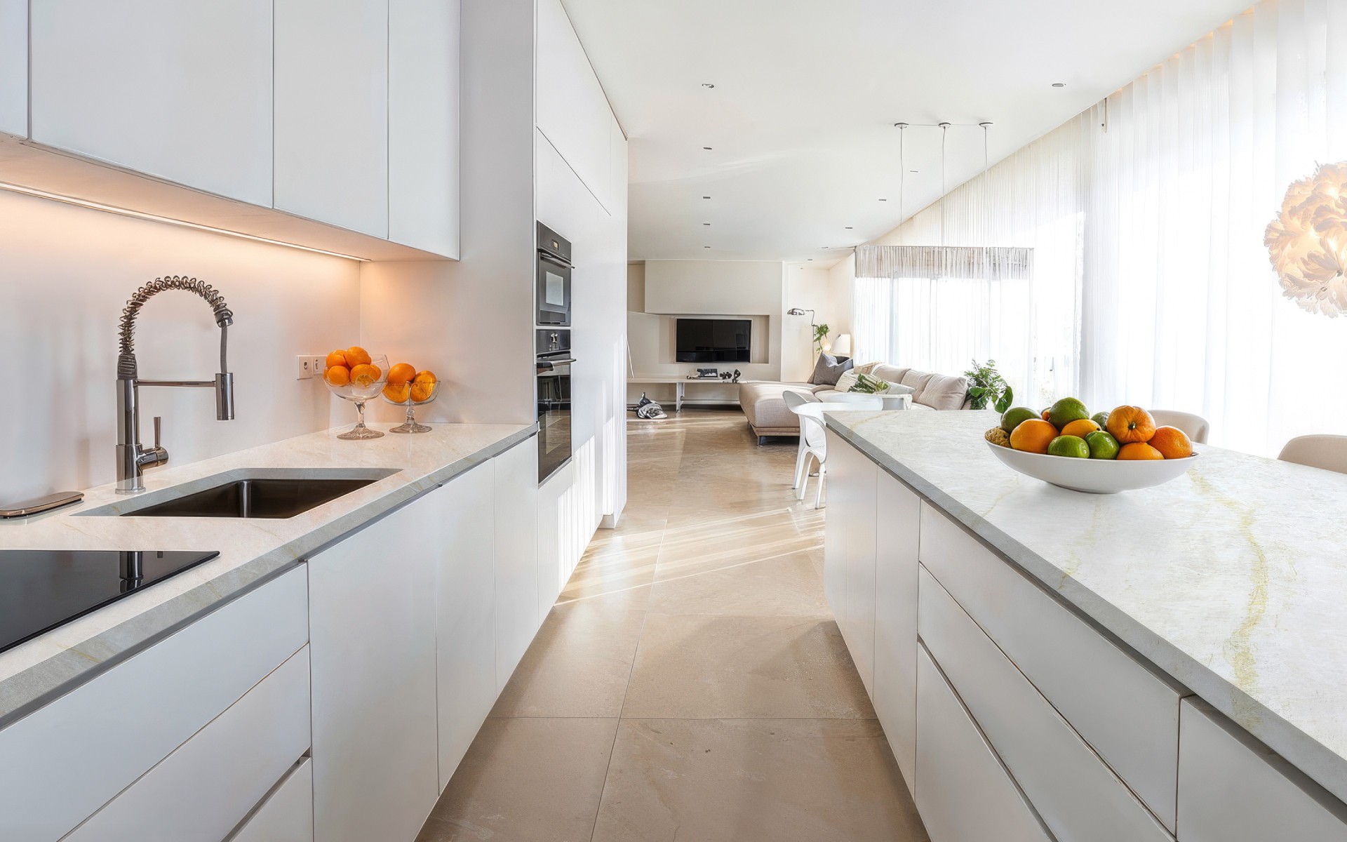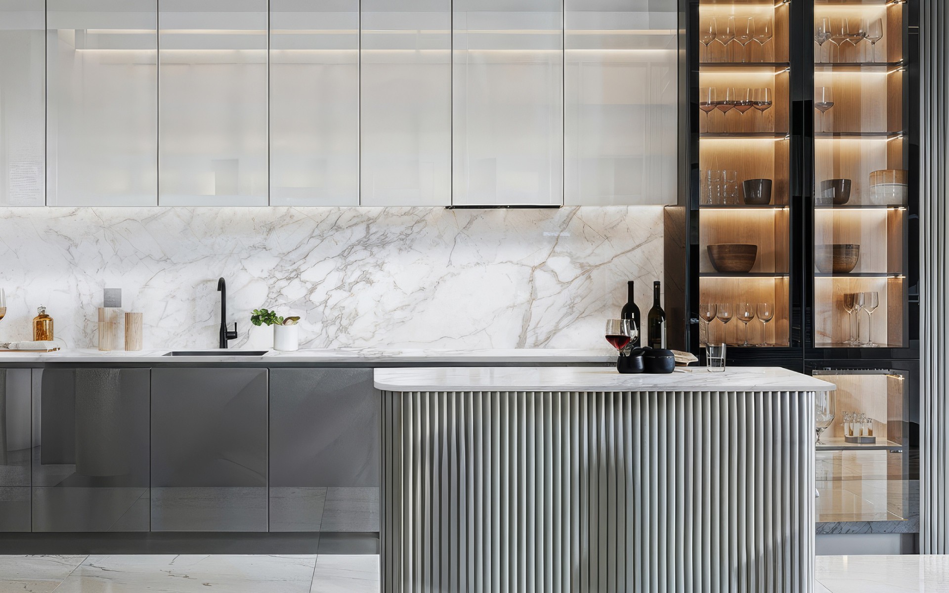 Klasikinio balto marmuro interpretacija Calacatta Normandie – tai subalansuotas tradicijų ir technologijų derinys. Vidutinio ryškumo pilkos gyslos sukuria universalų raštą, kuris neapkrauna erdvės, bet suteikia jai reikiamos faktūros.
