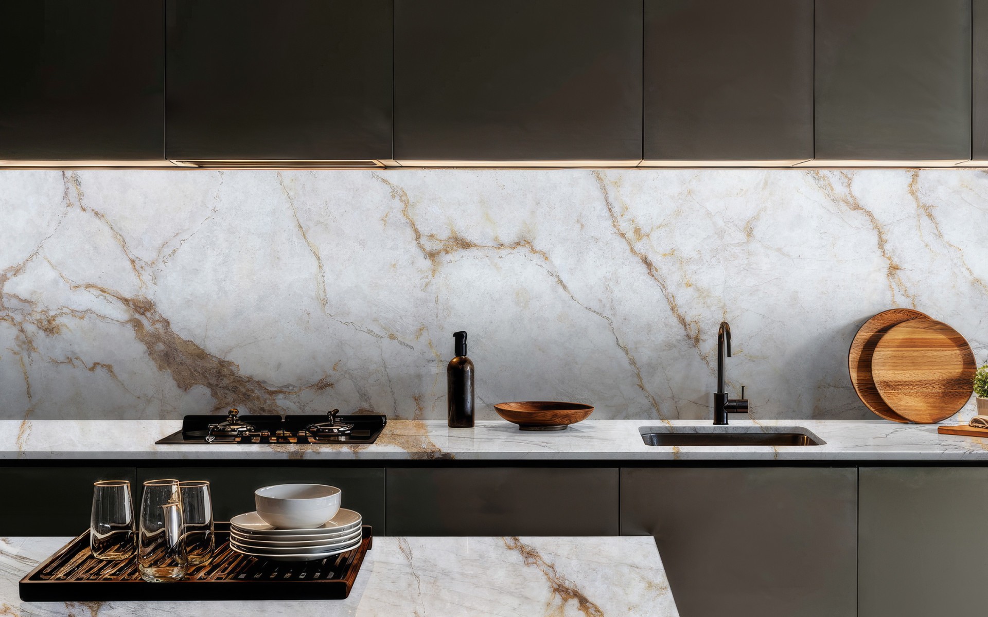 Calacatta Besson elegancija slypi sudėtingame aukso, smėlio ir pilkų atspalvių derinyje, sukuriančiame taurią paletę be perteklinės ekspresijos. Tekstūra atrodo santūriai ir aristokratiškai, imituodama brangiausius itališko marmuro pavyzdžius.