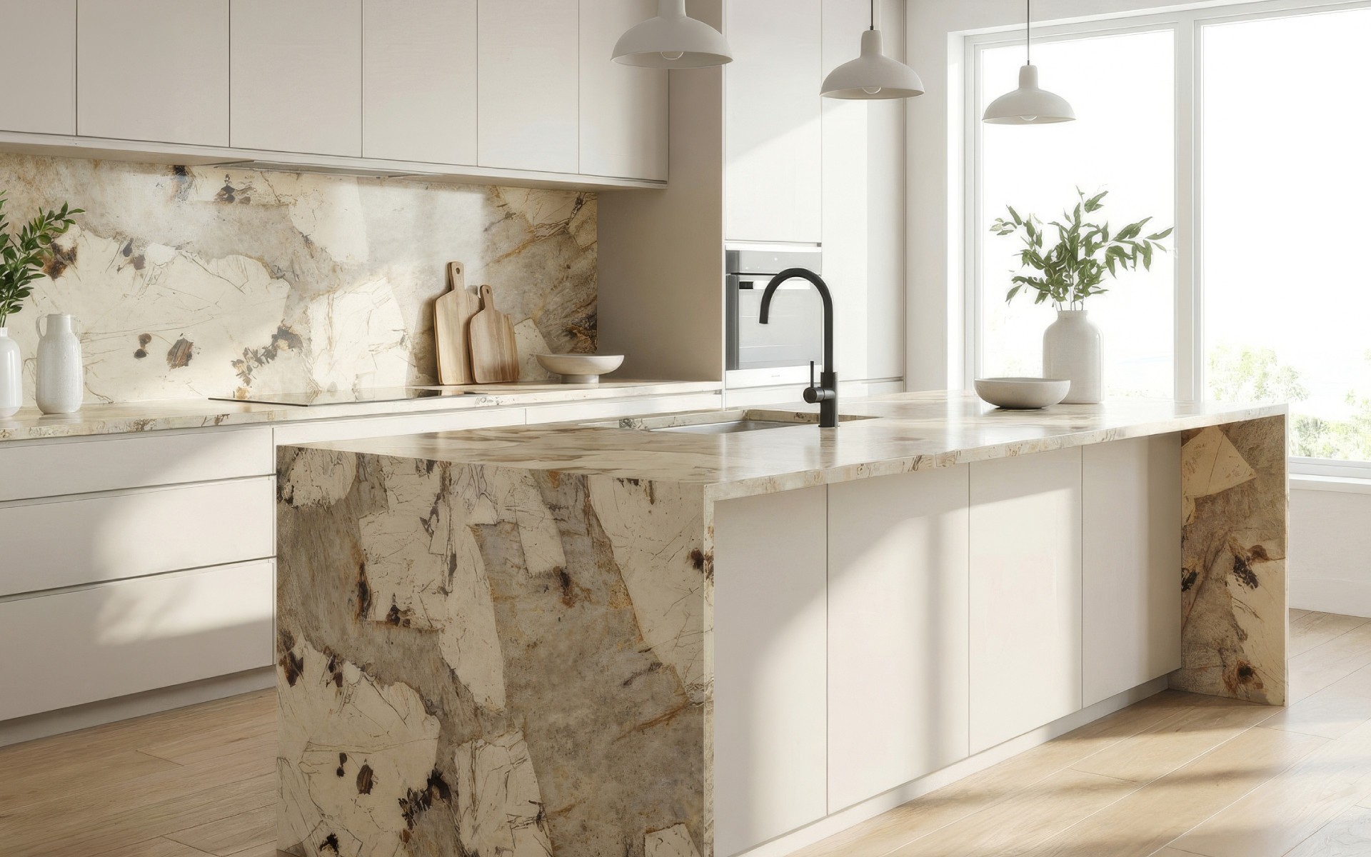 Profesionalams – architektams ir akmens apdirbimo meistrams – tai reiškia visišką laisvę įgyvendinant sudėtingus mazgus. Frezuojant, formuojant figūrines briaunas ar apdirbant matomus galus, gyslų raštas išlieka identiškas pagrindiniam paviršiui. „Tuščio“ pagrindo nebuvimas po spaudos sluoksniu garantuoja gaminio vizualinį vientisumą net ir kriauklės ar kaitlentės išpjovų vietose.