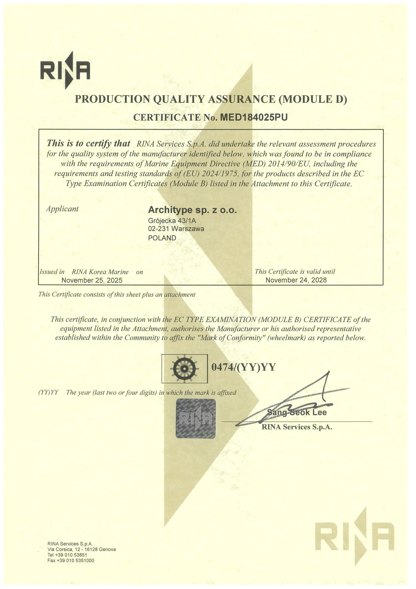 GRANDEX. RINA Production Control Certificate MED184025PU